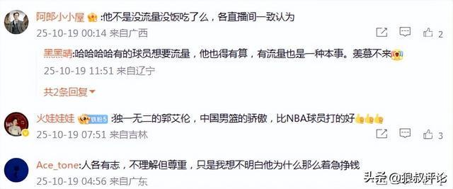 也有球迷觉得郭艾伦已经看起来不像是职业球员,缺席了广州夏季联赛,大大小小热身赛,以及NBA季前赛这种含金量十足的比赛也缺席,个人重心已经是偏文娱明星发展。