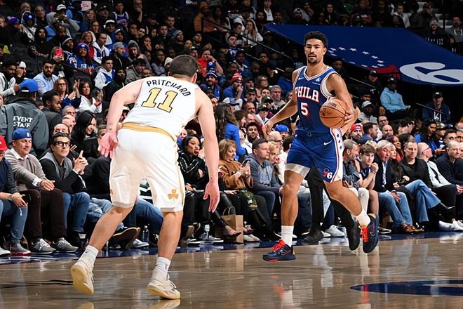 本场比赛中,76人的替补后场大将昆汀-格莱姆斯(Quentin Grimes)的表现还是相当不错的。格莱姆斯全场出场27分50秒,投篮10中6,三分线外6中3,罚球3中3,得到了18分6篮板4助攻1盖帽的数据,还有4次失误和2次犯规,正负值为0。格莱姆斯在本场比赛中依然是在攻防两端起到了很好的效果,他在进攻端展现出了相当不错的得分能力,他也具备稳定的投射能力,他在进攻端也是给对手制造了不小的威胁。不仅如此,格莱姆斯在传球和组织方面也是起到了很好的效果的,他也是球队第二阵容中的核心人物。格莱姆斯在防守端的表现也是相当突出的,他也能够在防守端起到很好的效果。格莱姆斯算是帮助球队稳住了局面,他也是为球队的胜利做出了巨大的贡献。