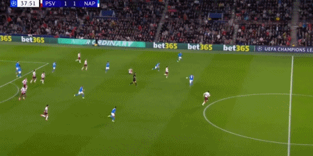 第35分钟,佩里西奇传中,布翁焦尔诺不慎乌龙,埃因霍温1-1那不勒斯